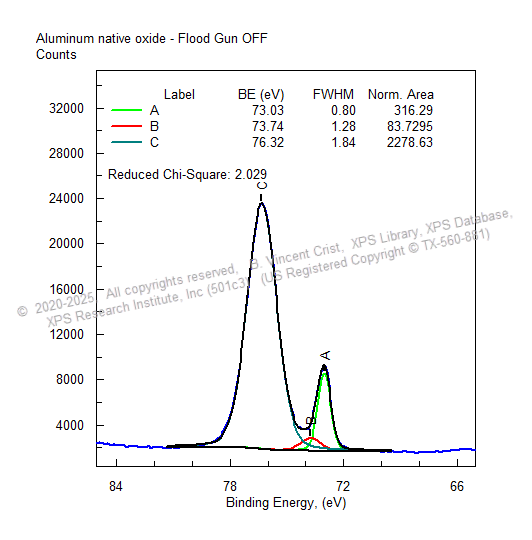 | Al | 13 | Al – element | 72.9 eV | 285.0 | The XPS Library | |