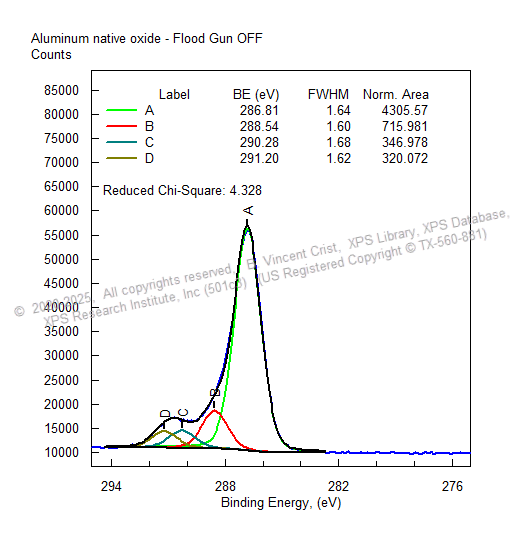 Pure Alo Metal, Al Native Oxide & Al2O3 – Al (2p) C (1s) = 286.8 eV (as measured) |