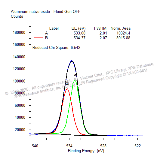 | Scofield Cross-Section (σ) Value: | Al (2p) = 0.537 |