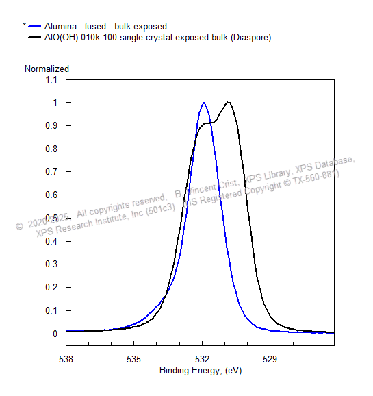 | Overlay of O (1s) from Al2O3 and AlO(OH) |