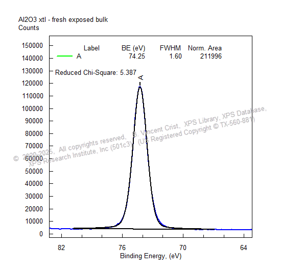 - Primary Peak (XPS Signal) used to measure Chemical State Spectra: Al (2p) at 73 eV