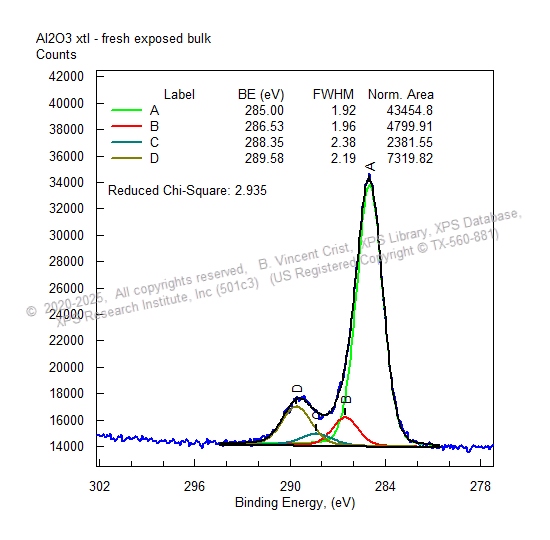 Al2O3 – exposed bulk Charge Referenced so C (1s) =285.0 eV |